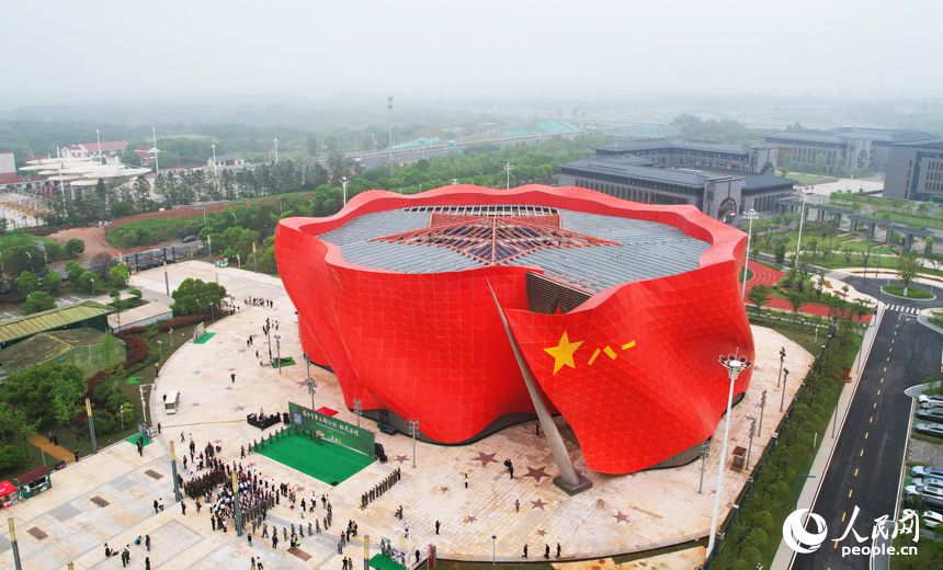 人民网南昌4月28日电 (记者毛思远)4月28日,位于江西省南昌市红谷滩区的南昌军事主题公园轻武器馆正式开馆,对社会免费开放。场馆外观设计为迎风飘扬的军旗,独特醒目,馆内展陈千余件轻武器,让市民游客近距离感受英雄荣光。